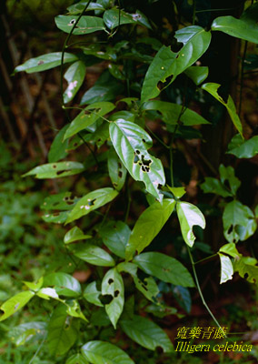 There is only one species of Illigera in Hong Kong. S.T. Dunn named it as a new species Illigera platyandra in 1908 in the Journal of the Linnean Society, Botany -- based on a specimen originally collected in Wong Nai Chung and cultivated in the Hong Kong Botanical Garden. The scientific name was later on considered as a synonym of Illigera celebica which has a distribution range from Yunnan, Indochina to Malaysia.